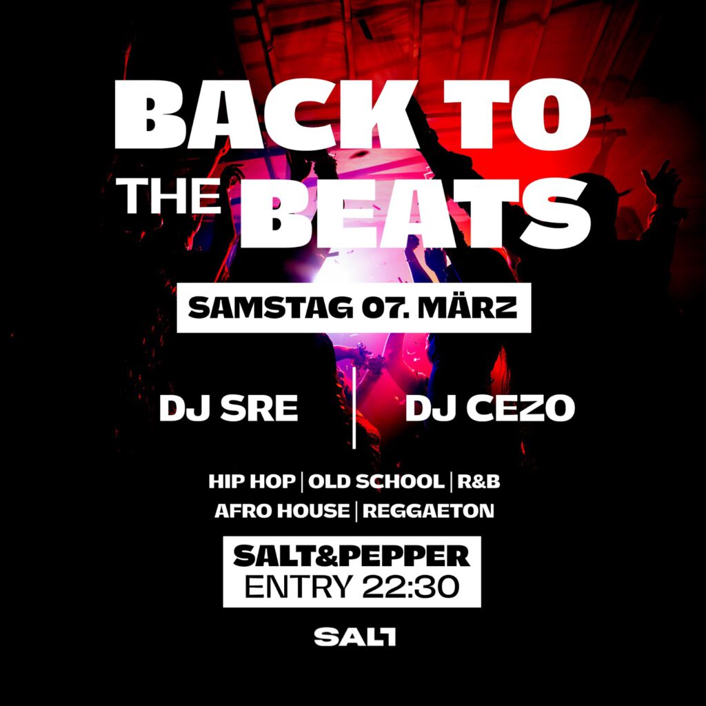 Back to the Beats – 07.03.2026 | ab 22:30 Uhr Am Samstag, den 7. März 2026, heißt es ab 22:30 Uhr: Back to the Beats – eine Nacht voller Rhythmus, Energie und musikalischer Vielfalt. Mit DJ Sre und DJ Cezo stehen zwei erfahrene DJs an den Decks, die wissen, wie man den Dancefloor zum Beben […]